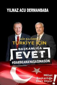 Yıllardır yaptığı yardımlarla gönüllerde taht kuran Dermanbaba Lakaplı Hayırsever Yılmaz Acu Referandum’da ‘Evet’ oyu kullanacağını belirterek, sevenlerine de ‘evet’ vermelerini istedi. Acu, “Cumhurbaşkanımızın yanında olduğumuzu hissettirelim. Referandumdan “evet” çıkarsa Halk huzuru bulacak inşallah Allah’ın izniyle evet çoğunlukta çıkacak artık halk huzur istiyor gözyaşı istemiyor acılar dramlar insanların ölmeleri ile bir kirli savaş yıllardan buyana vardır ne faydası oldu terörün şiddetin insanlığa faydası olmamıştır .artık yeter insanlık için ülkemizin geleceği için evet söylüyorum. Hepimiz insanız paylaşılmayacak ne vardır bu topraklar hepimize yeter” dedi.